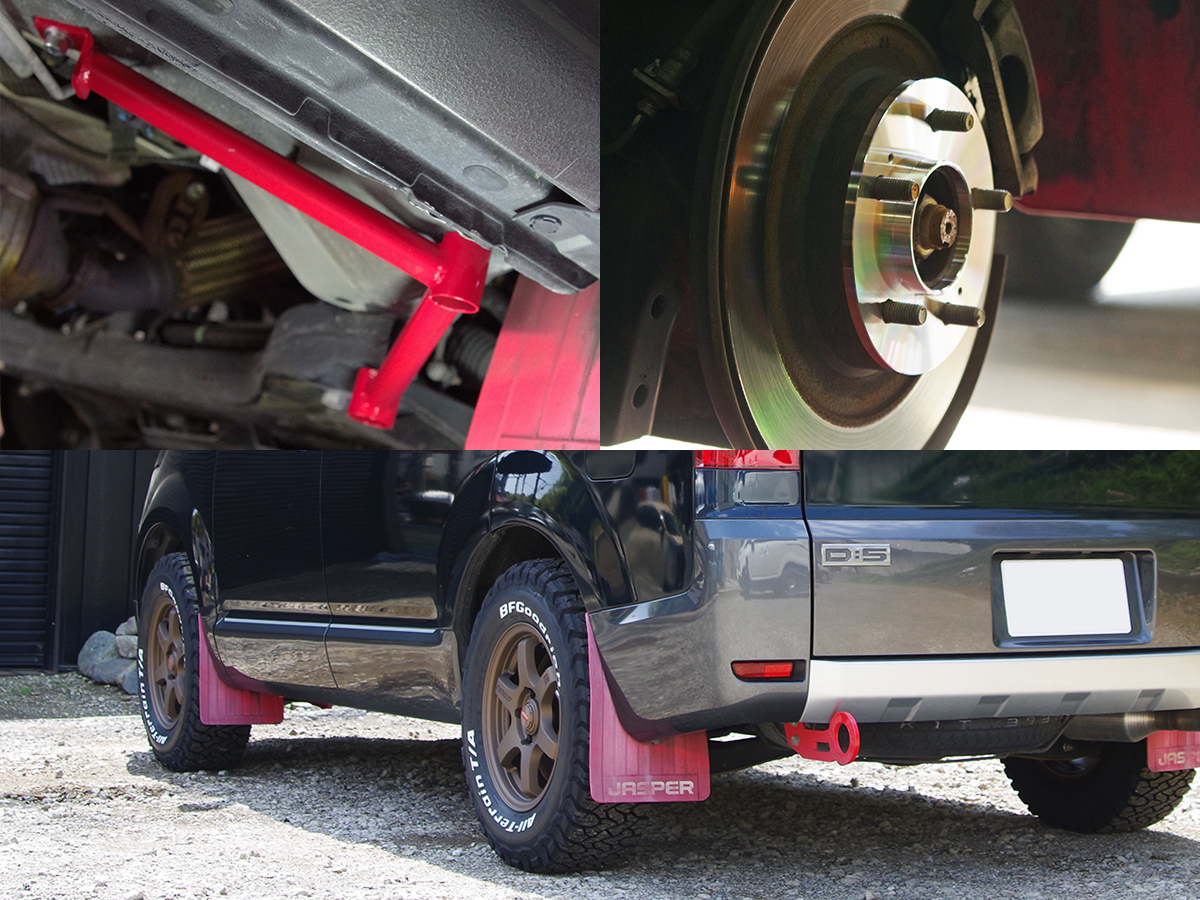 静岡県からご来店の三菱デリカD5ジャスパーのお客様。レイズ グラムライツ57DR-X2 ダークブロンズにBF Goodrich All-Terrain T/A KO3 LT235/70R16ホワイトレターで組み装着です。リアにはGBSデリカD:5専用ハブ一体型スペーサ7.0mmを入れ出面調整。同時にデリカD:5強化ボディサポートクロストライアングルサポートForデリカD5も取付させて頂きました。ボディ剛性が上がった事がお帰りの道中で体感できるかと思います。遠くからのご来店ありがとうございました。またのご利用お待ちしております。ごぶやまパート2