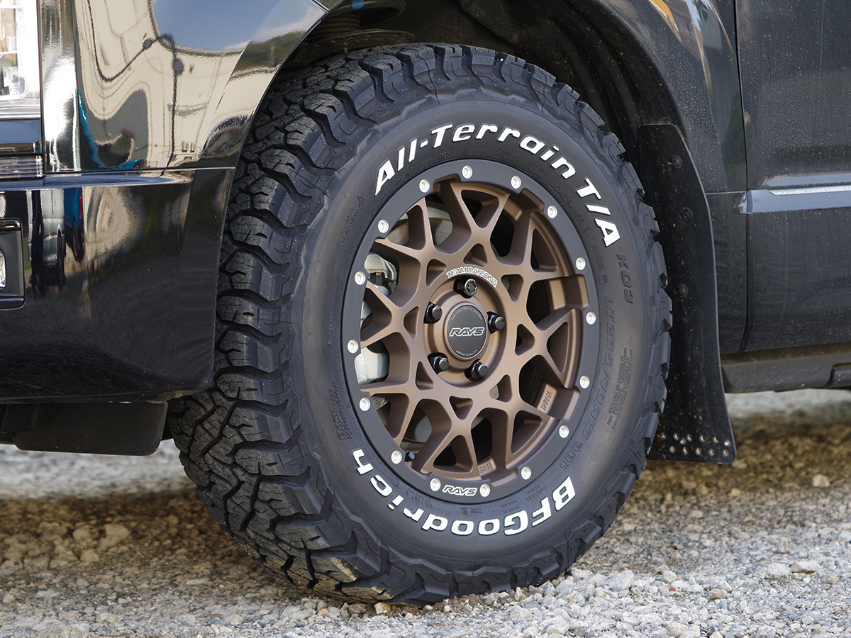 三菱デリカD5にレイズデイトナM8 xB Editionダークブロンズ/E-pro Coat16インチ装着。BFグッドリッチオールテレーンT/A KO3 LT235/70R16ホワイトレターで組みマックガード社製インストレーションキットブラックで取付させて頂きました。納期が半年ほどかかりましたがお客様も満足して頂き良かったです。また色々とご相談下さい。ありがとうございました。ごぶやまパート2