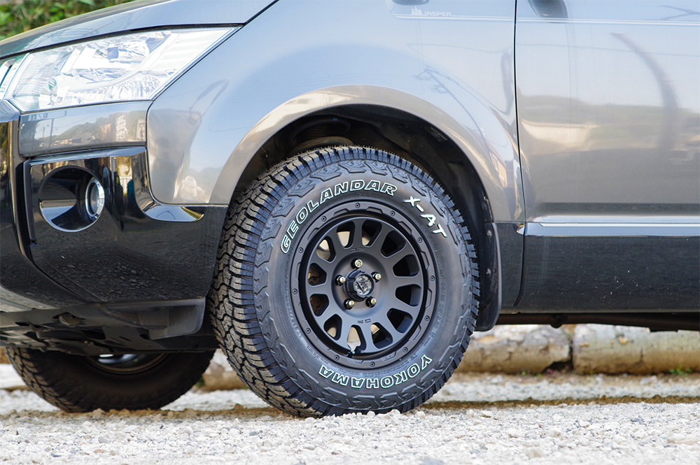 三菱デリカD5ジャスパーにAir/G Rocksゴーストエディション16インチ装着です。タイヤは人気のヨコハマ ジオランダーX-AT G016 外形を大きくしてLT245/70R16を組み、リアにはGBSデリカD:5専用ハブ一体型スペーサ7mmを入れマックガード社製インストレーションキットブラックで取付させて頂きました。足元のボリュームも増しフェンダークリアランスもパツパツでかっこよく仕上がりました。また色々とご相談下さい。ありがとうございました。ごぶやまパート2