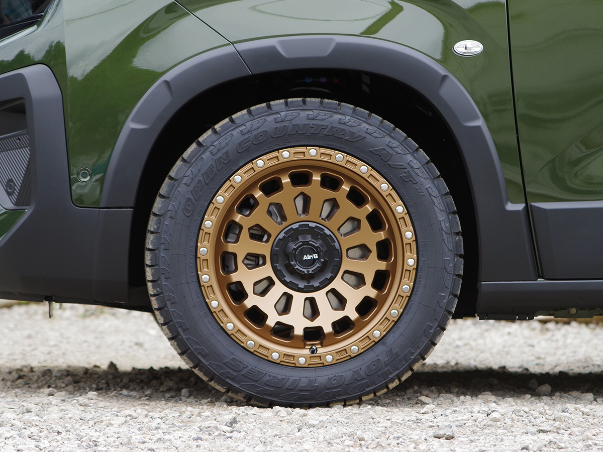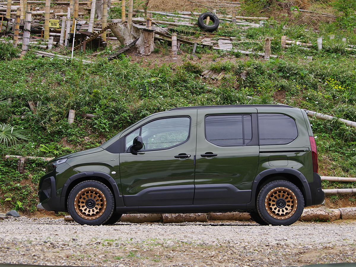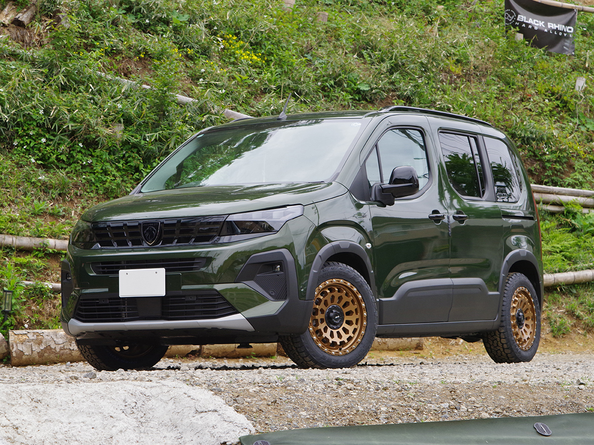 プジョー リフターをオフロードスタイルに!4X4エンジニアリング Air/G VULCAN マットブロンズにトーヨーオープンカントリーA/T3 215/60R17 ブラックレターで組み装着させて頂きました。ブレーキキャリパーとのクリアランスが少ない為、専用スペーサーを前後に入れて取付致しました。ボディーカラーとの相性も良くフェンダークリアランスも決まってかっこよく仕上がりました。オールテレーンタイヤで行動範囲が広がりそうですね。また色々とご相談下さい。ありがとうございました。ごぶやまパート2