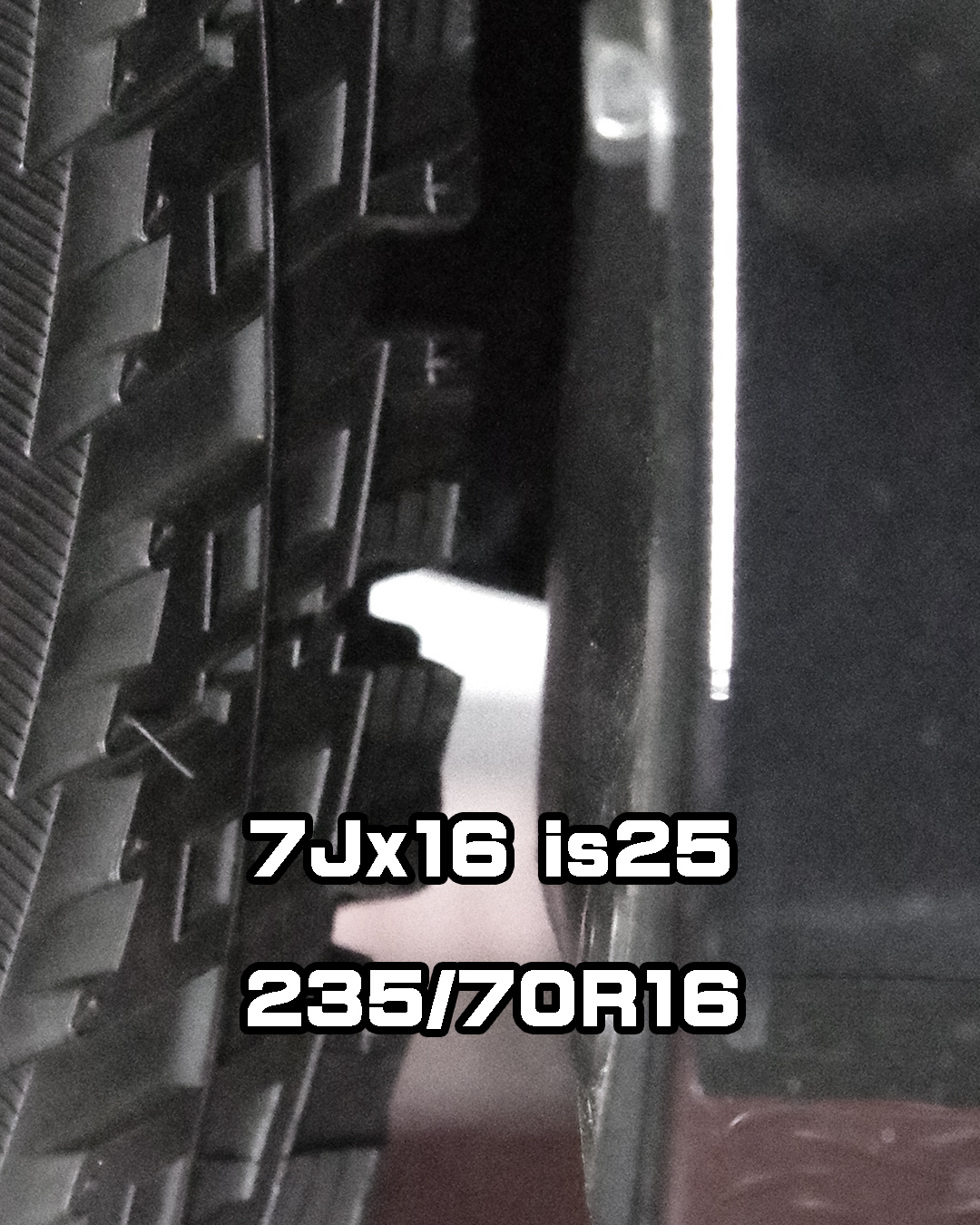 | 7Jx16 is25 235/70R16 径736mm インナーライナーとのクリアランスに 少し余裕があります |