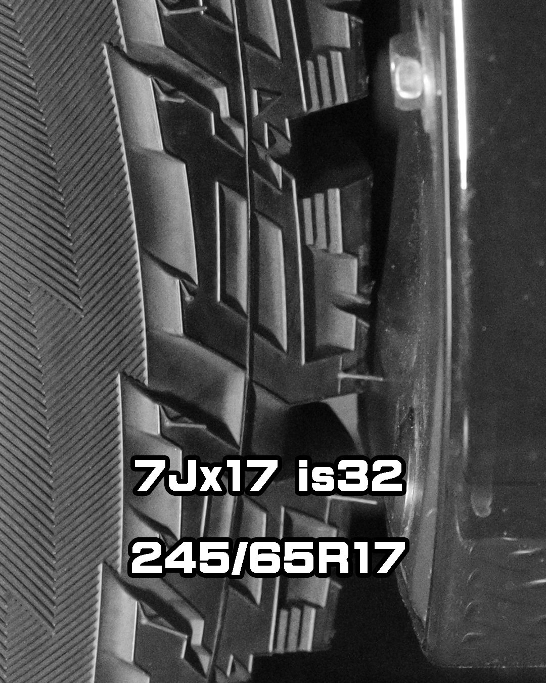 7Jx17 is32 245/65R17 径756mm インナーライナーに干渉します 7Jx16 is32で 245/70R16の径が750mm以上は干渉します |