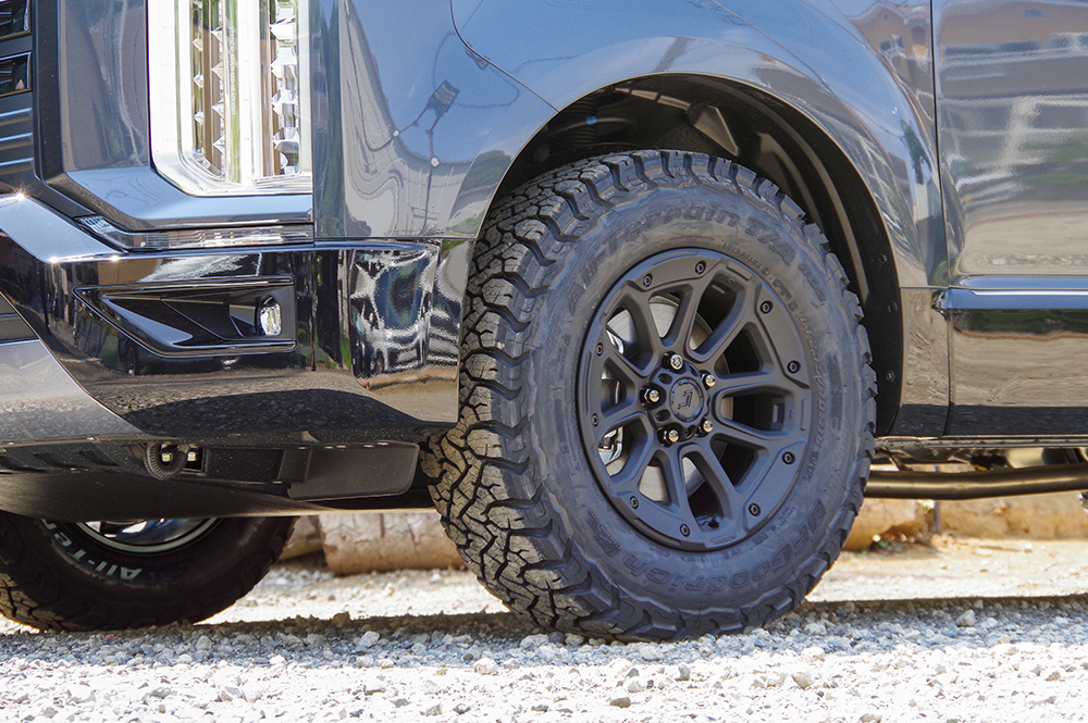 納車したばかりの三菱デリカD5にJEPPESEN MJCR216(FLAT BLACK/TMC)17インチ装着です。タイヤはBF Goodrich All-Terrain T/A KO2 245/65R17をホワイトレターで組込みました。ナットはMcGardインストレーションKIT BLACKで取付けました。前後GBSデリカ専用ハブ一体型スペーサーを使って出面を調整してイイ感じの出面に仕上がりました。ありがとうございました。 またのご来店お待ちしています。 ごぶやまパート2店 JEPPESEN MJCR216