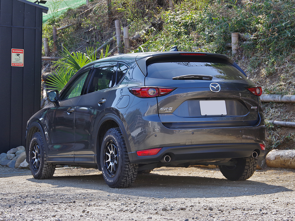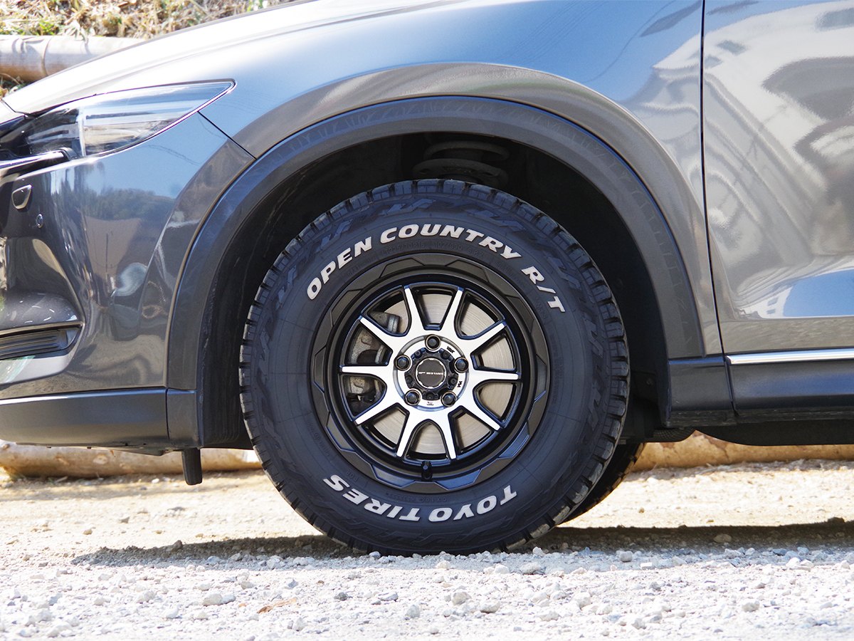 マツダCX-5にWEDS MUD VANCE06マットブラックポリッシュ&トーヨーオープンカントリーR/T LT225/70R16ホワイトレターで装着です。バランスウエイトは目立たないようにブラックにしてロンスターロックナットセットブラックで取付させて頂きました。19インチからのインチダウンでオフロード仕様に。全体の雰囲気も良くなりかっこよく仕上がりました。茨城県からのご来店ありがとうございました。またのご利用お待ちしています。ごぶやまパート2